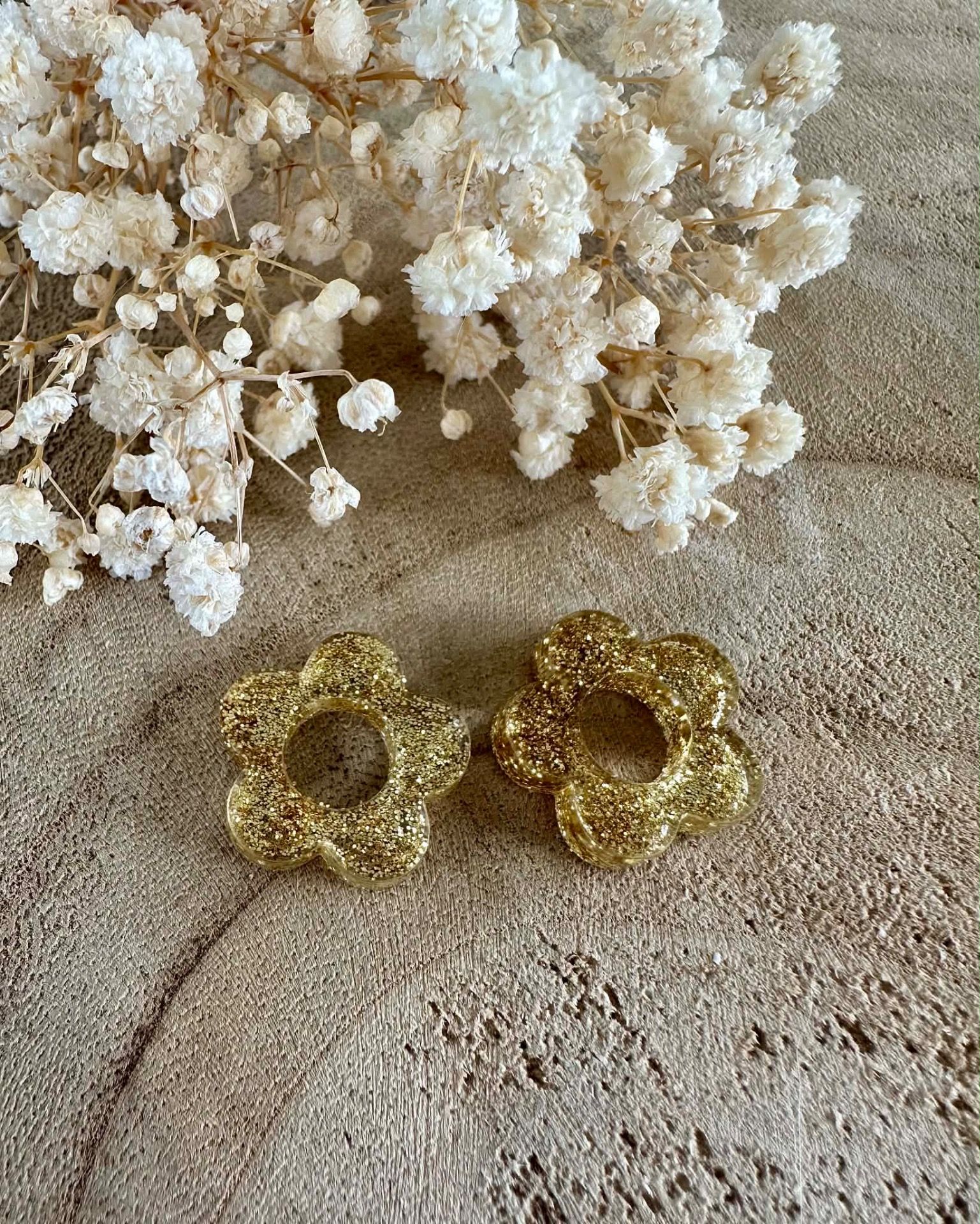 Article hors stockApprêts dorés en résine. Les anneaux ne sont pas vendus avec.