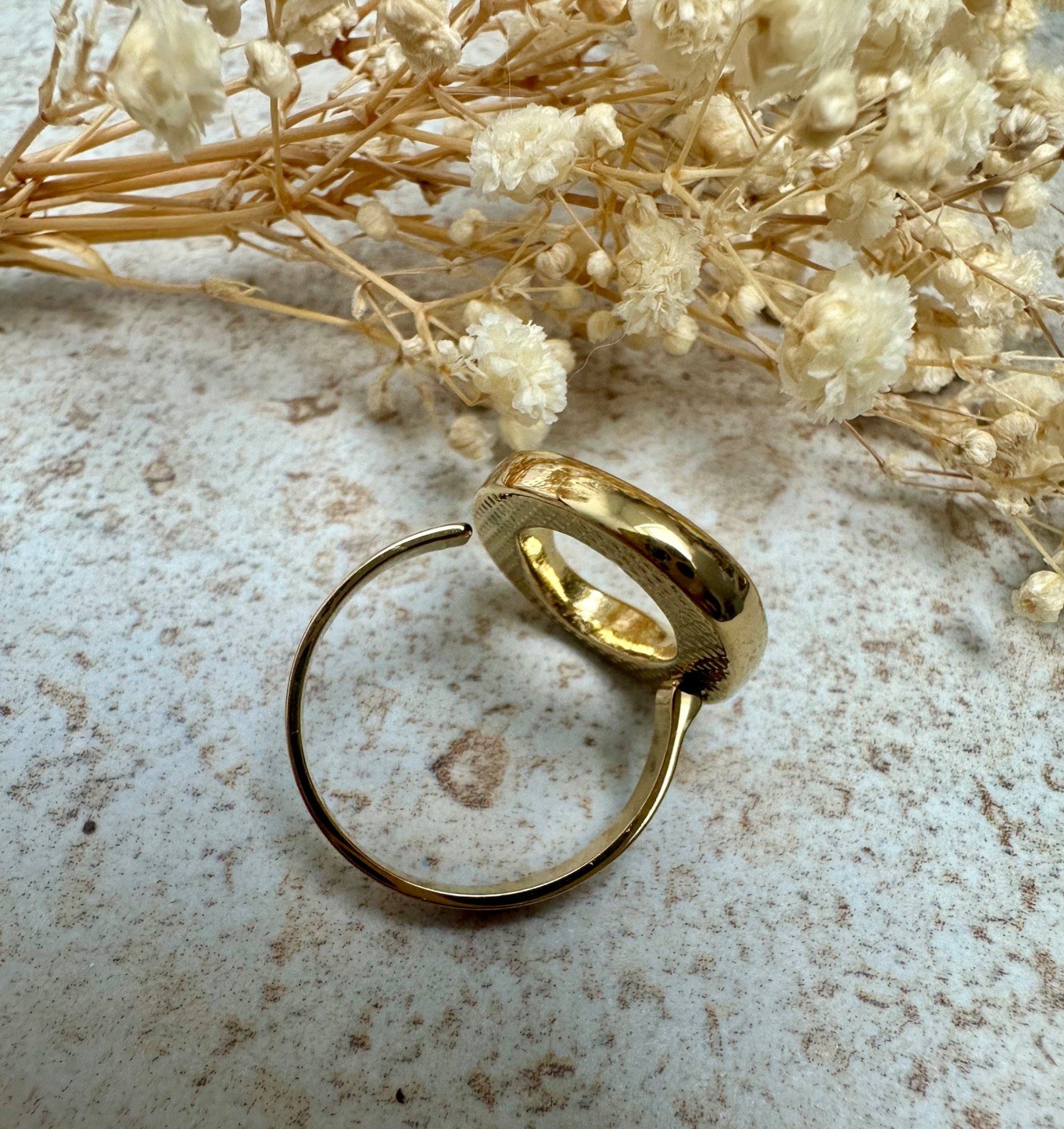 Bague dorée en acier inoxydable ajustable sur le devant.