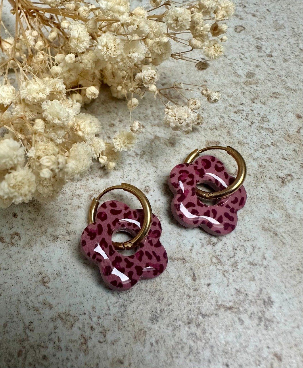 Boucles d'oreilles dorées en acier inoxydable avec ses pampilles en pâte polymère.