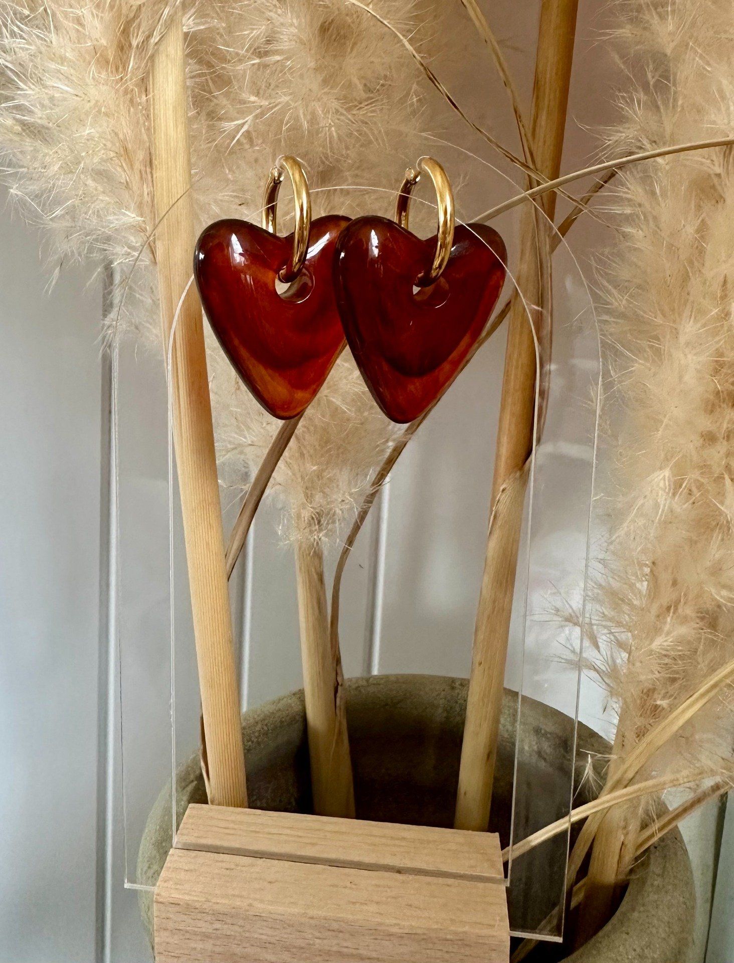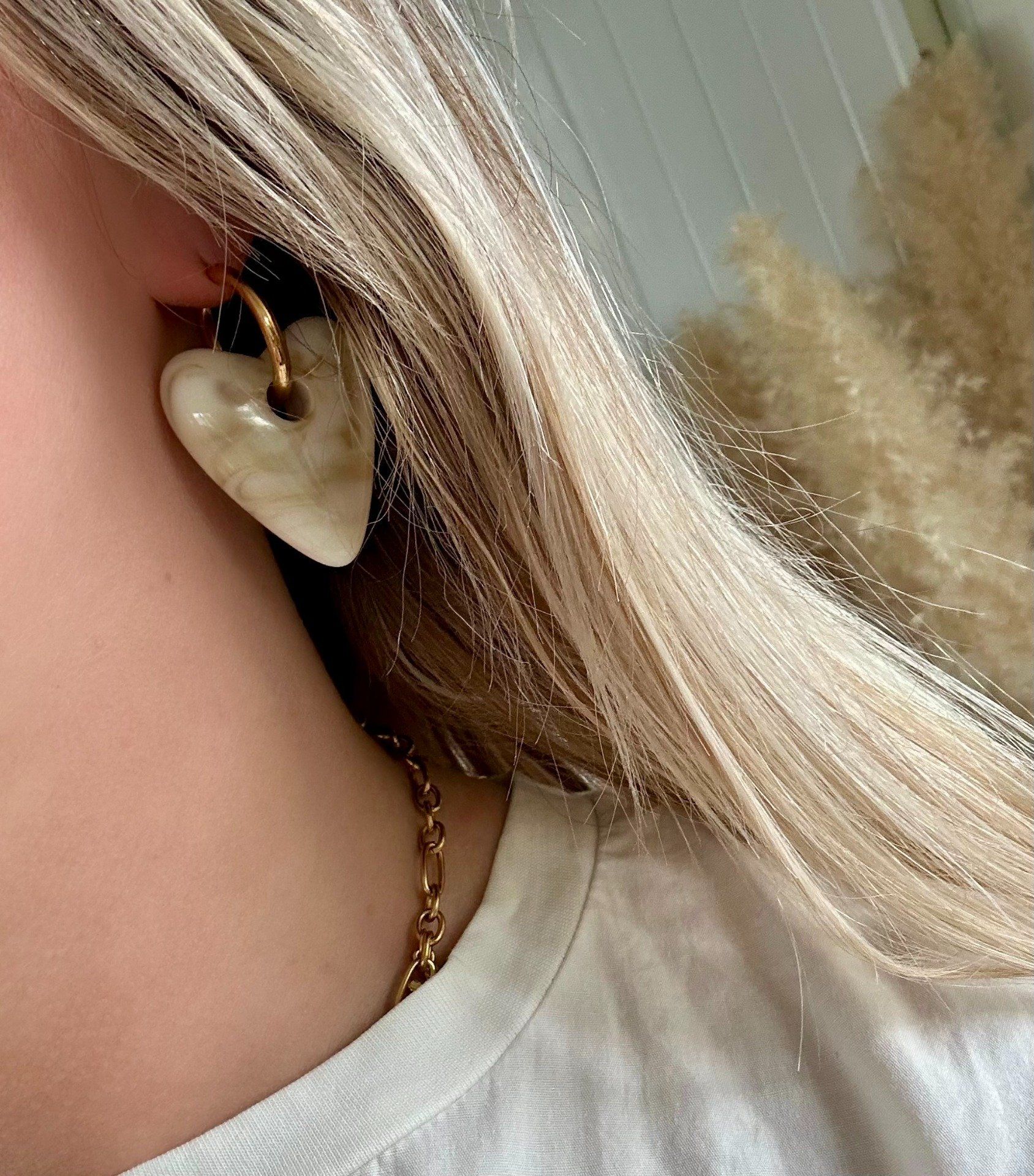 Boucles d'oreilles dorées en acier inoxydable avec son cœur.