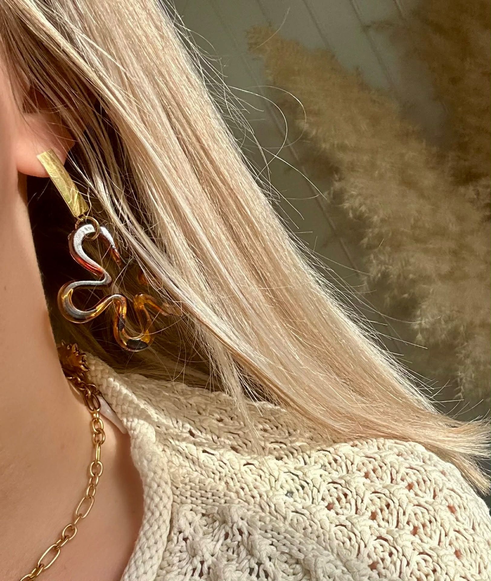 Boucles d’oreilles dorees en acier inoxydable avec son apprêt fleur.