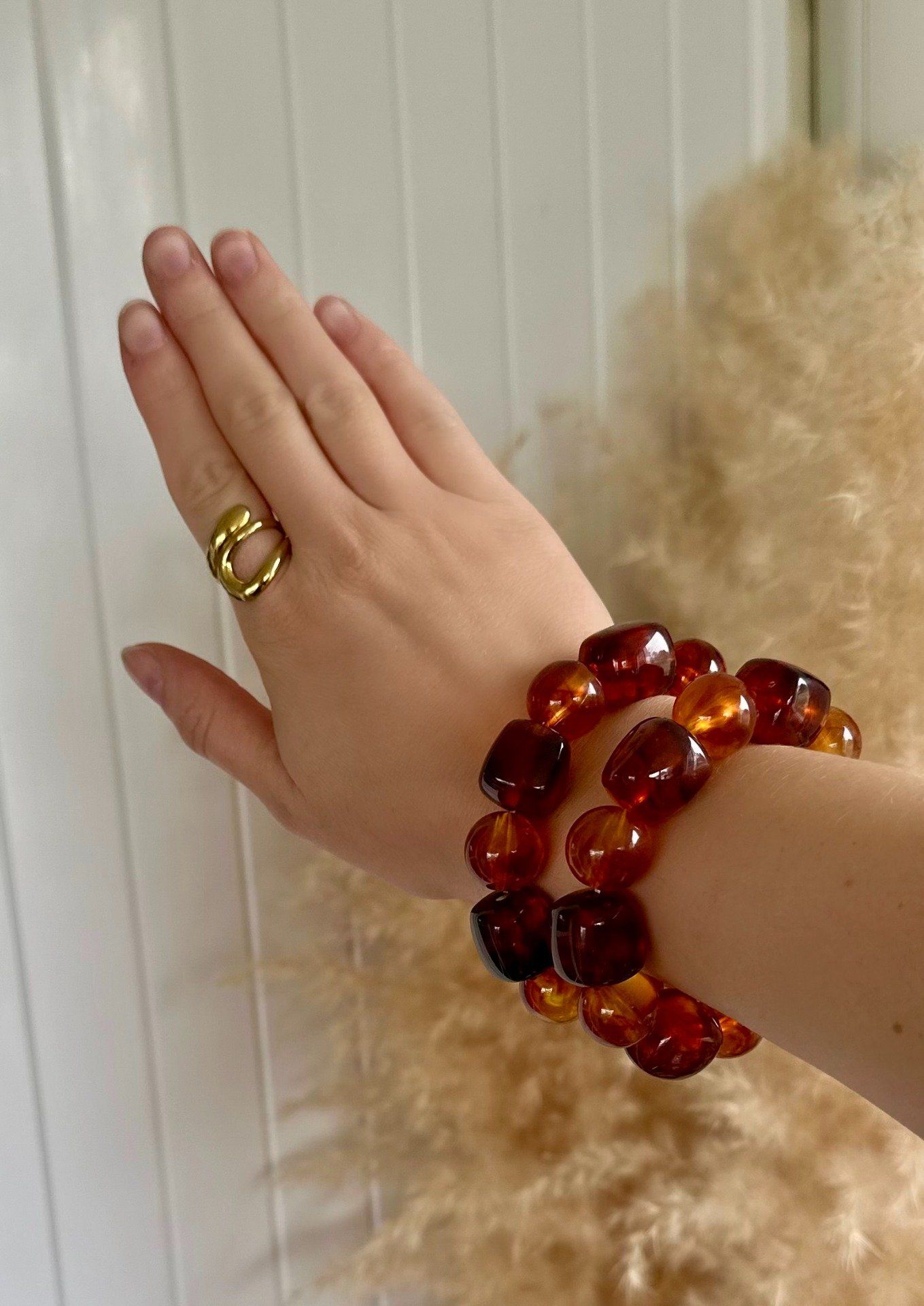 Bracelet élastique avec ses perles. Disponible en beige ou marron.