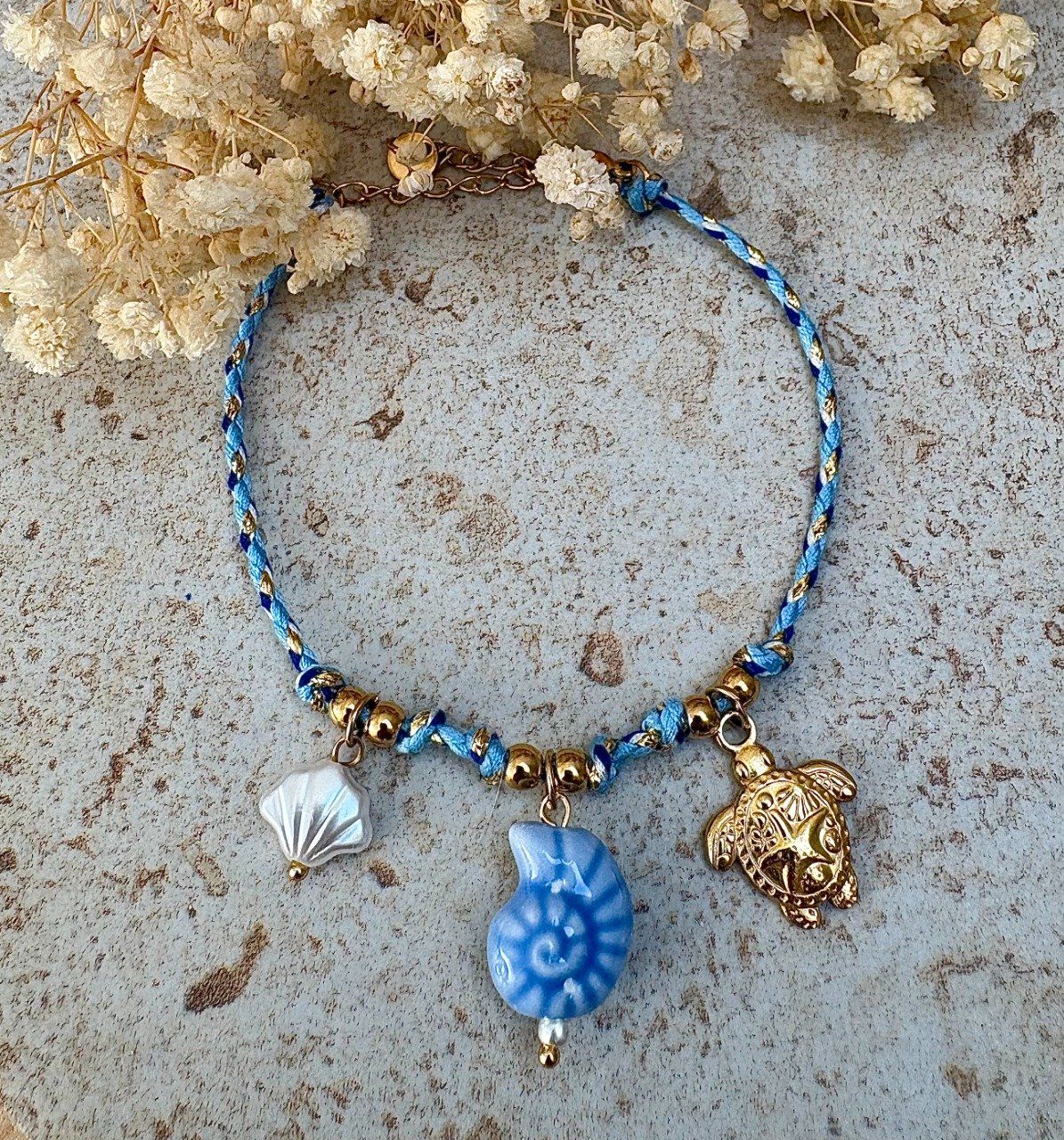 Bracelet doré en acier inoxydable avec ses charms.