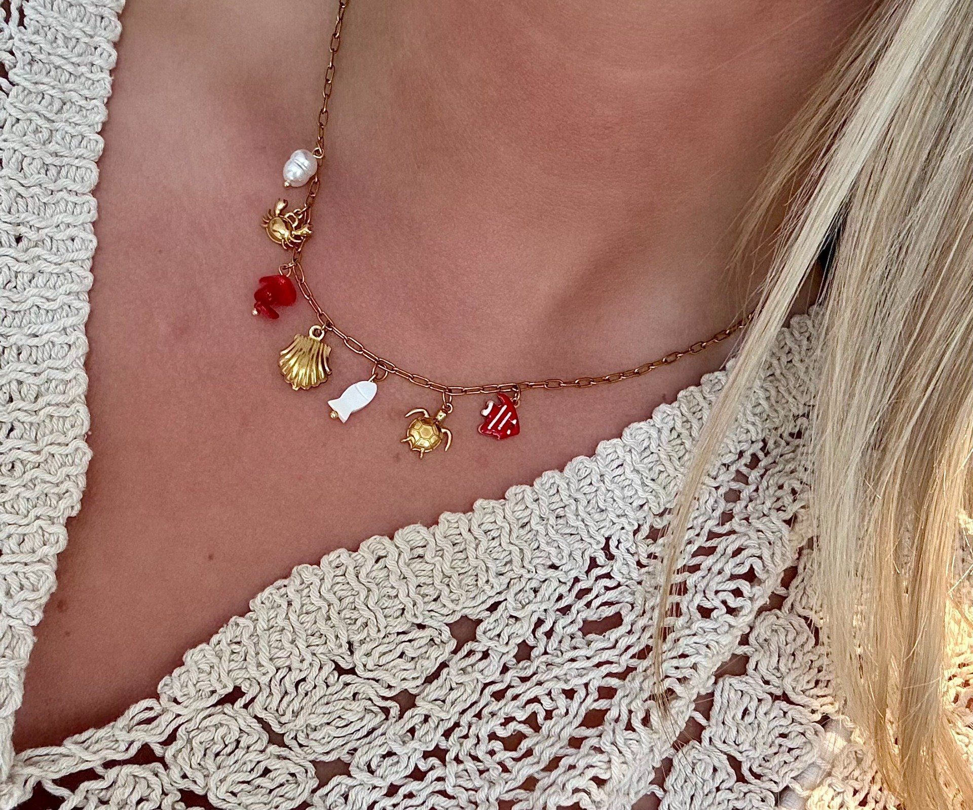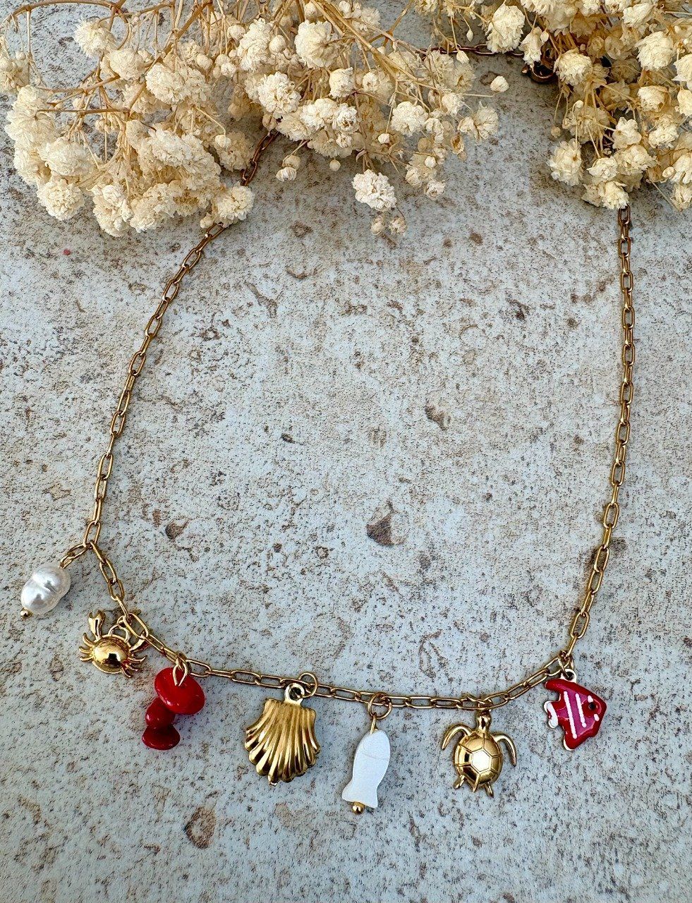 Collier doré en acier inoxydable avec ses charms. Dimensions : 40 à 46cm